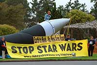 アメリカのブッシュ政権は,各国の反対をよそに「ミサイルの脅威をなくす」と称して,「盾」,すなわちミサイルを迎え撃つミサイル網を作ろうとしています.しかし「矛盾」という言葉を知っている私たちは,これが新たな核軍拡につながるだけのものと考えます.この計画の本当の狙いは何なのか考えてみましょう.そして私たちは何をすべきかを.